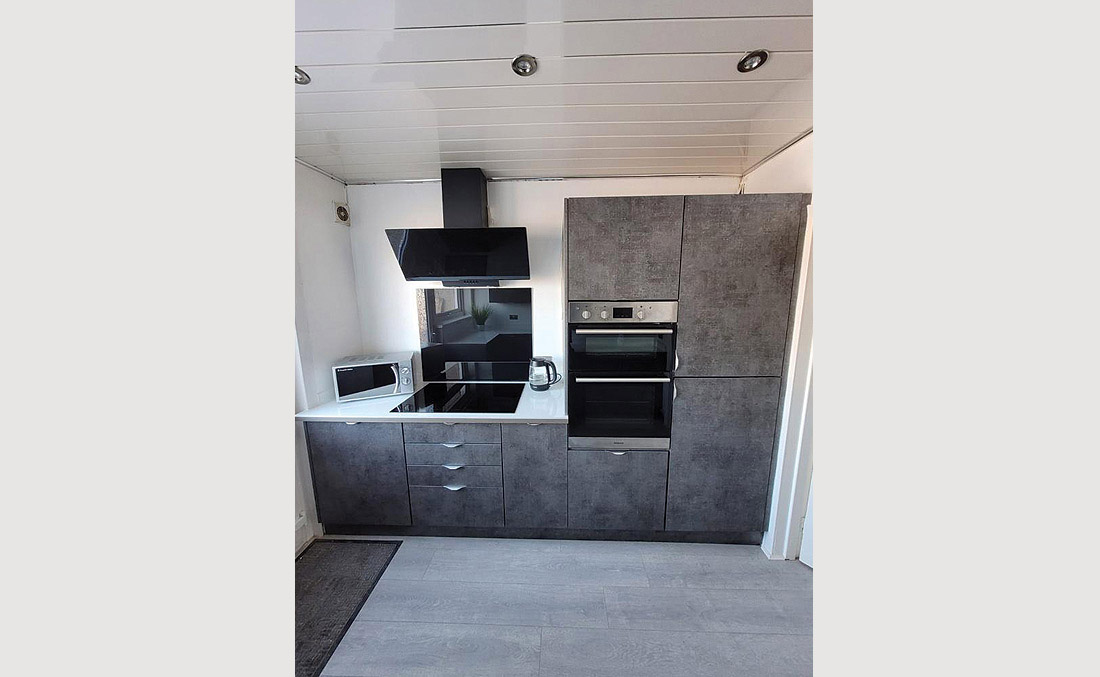 Grey modern style kitchen with intergrated appliances